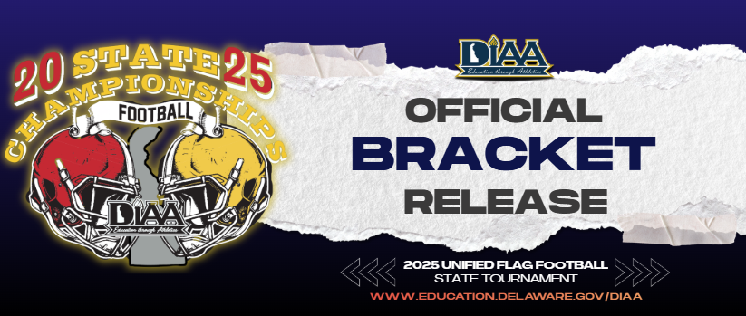 Dover, DE – November 7, 2025 – The Delaware Interscholastic Athletic Association (DIAA) is excited to unveil the official bracket for the 2025 DIAA Unified Flag Football State Championship. Eight (8) of Delaware’s top high school teams have qualified for this year’s tournament based on their regular season performance and the selection criteria outlined in the DIAA Unified Flag Football Tournament Manual. These teams will now compete for the coveted state title.